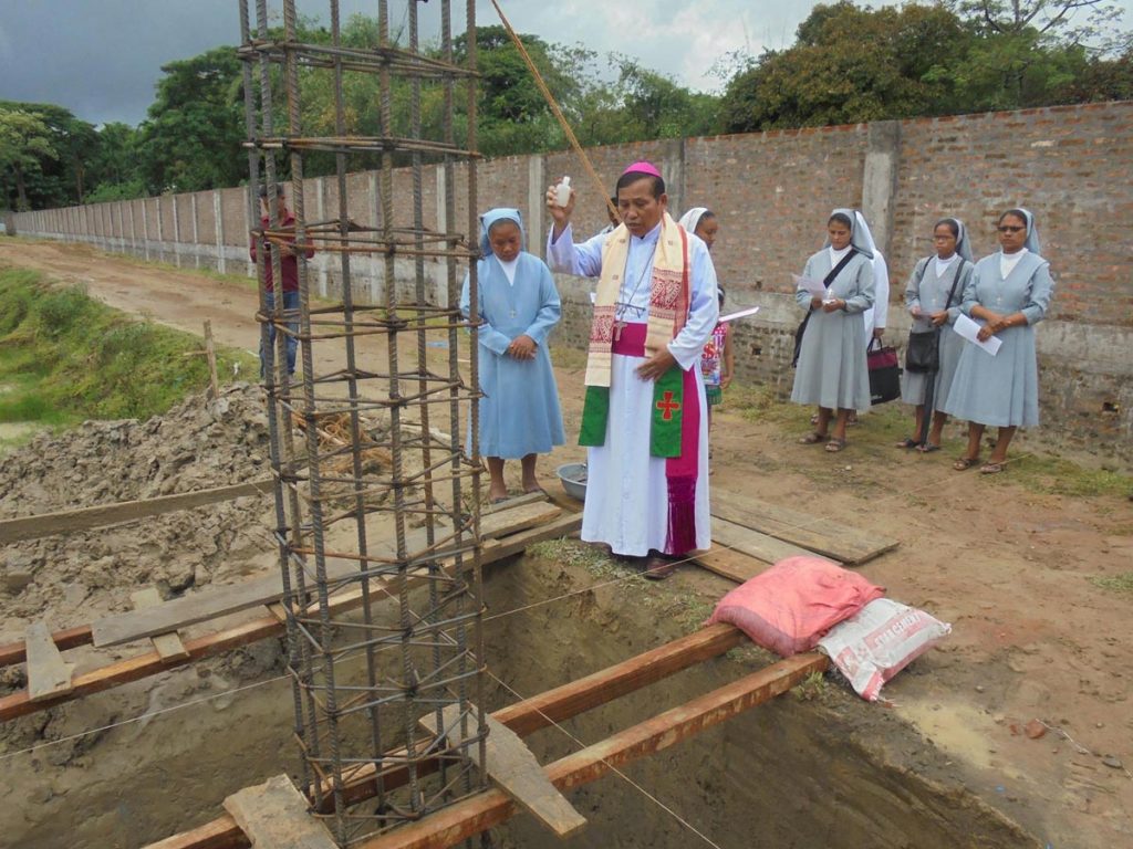 Coinciding with the feast of the Holy Rosary, the School looks up to the patronage of Mary under whose name the school stands. The venture will house many young boys and girls and will be the haven of knowledge and virtue for many. The foundation was laid and blessed by Rt. Rev. Stephen Rotluanga CSC, DD., Bishop of Aizawl diocese. It was preceded with the solemn Holy Eucharist celebrated in our chapel at Auxilium, Kabuganj, celebrated by Rev. Fr. Gnana Jesu Kumar the Assistant Parish Priest of Kabuganj Parish at 7.00 am. It was the best way of embarking on to such an important task. After the breakfast we proceeded to the school site at Mahadevpur, Dholai for the ceremony where a short but meaningful ceremony of the blessing of the foundation stone took place marking the significance of the day.