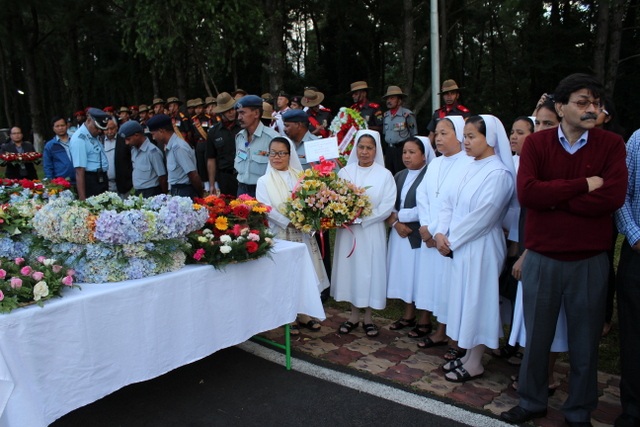 The Salesian Sisters of Shillong Province headed by the Provincial Economer, Sr. Marcellina Sangma were the privileged ones to pay their last respect to the mortal remains of Late Dr. APJ Abdul Kalam at the Shillong Helipad, Upper Shillong in the early hours of 28 July 2015. A beautiful wreathe was prepared for the occasion with the inscription “India has lost a great person in YOU, We will miss you, Adieu Dr. Kalam”. During the floral tribute by the different dignitaries Sr. Marcellina too represented us and placed the wreathe on our behalf.