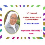 Sr. Rose Ezarath, the present Mistress of Novices is appointed as the 6th Provincial of the Mary Help of Christian Province, Kolkata. We wish her God's blessings in this new mission the Lord has entrusted with.
