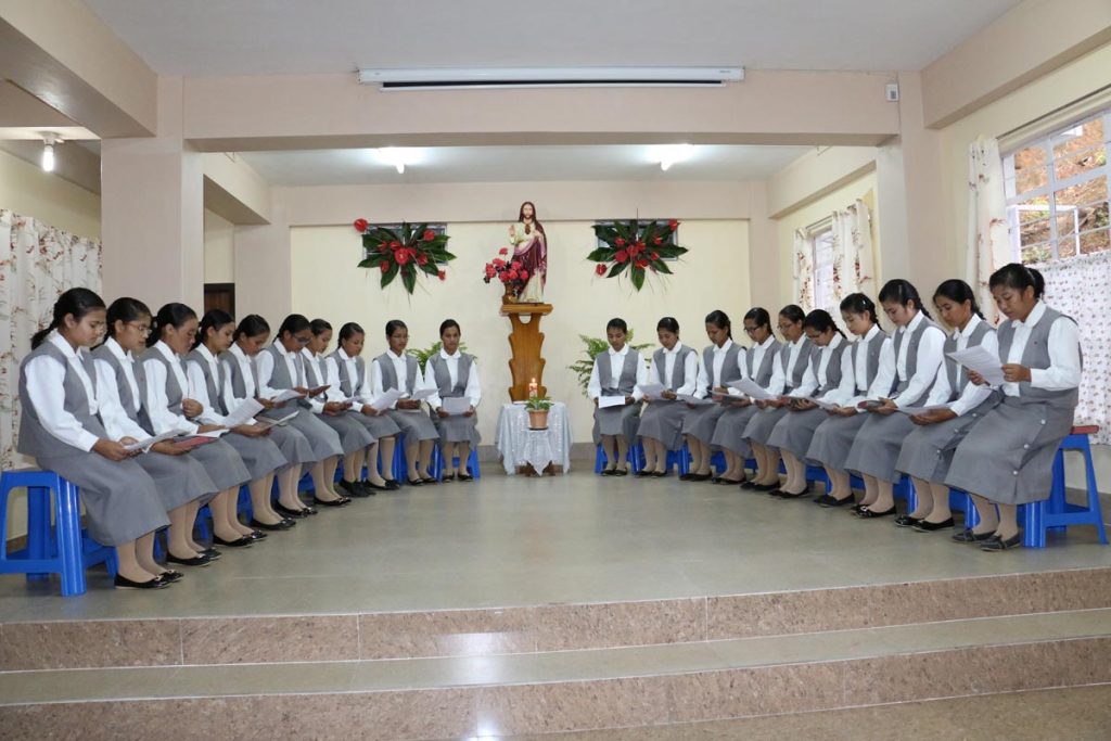 After the reception of the medal the Sisters, Novices and Aspirants broke into loud applause congratulating them and also few items were presented to wish and encourage them to be firm and convinced in their choice. The postulants also expressed their love and gratitude to God for calling and accompanying them through the song “You have called me from my mother’s womb”.